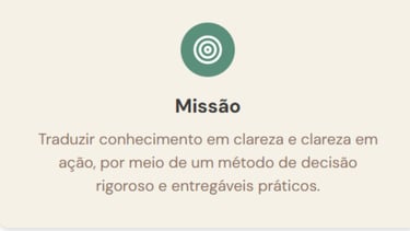 "Clareza não é calma. É um método de decisão." Nós traduzimos conhecimento em clareza e clareza em ação para que líderes e empreendedores pensem com profundidade e ajam com consistência